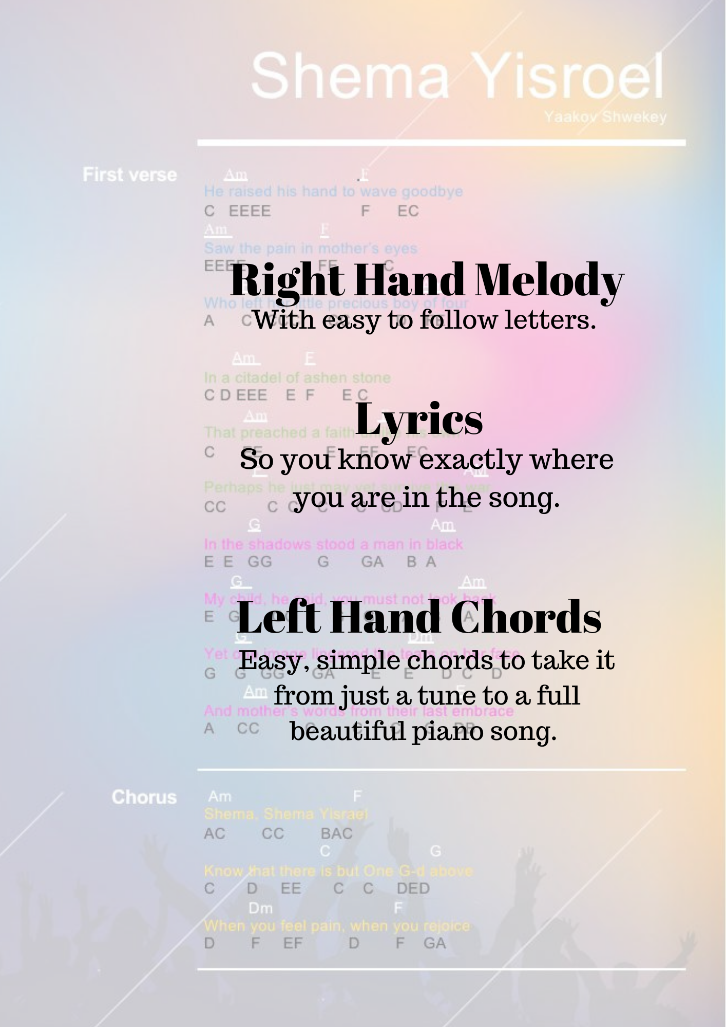 This songbook has a mixture of new, popular songs and also classics Jewish songs that everyone should have in their piano "toolbox."